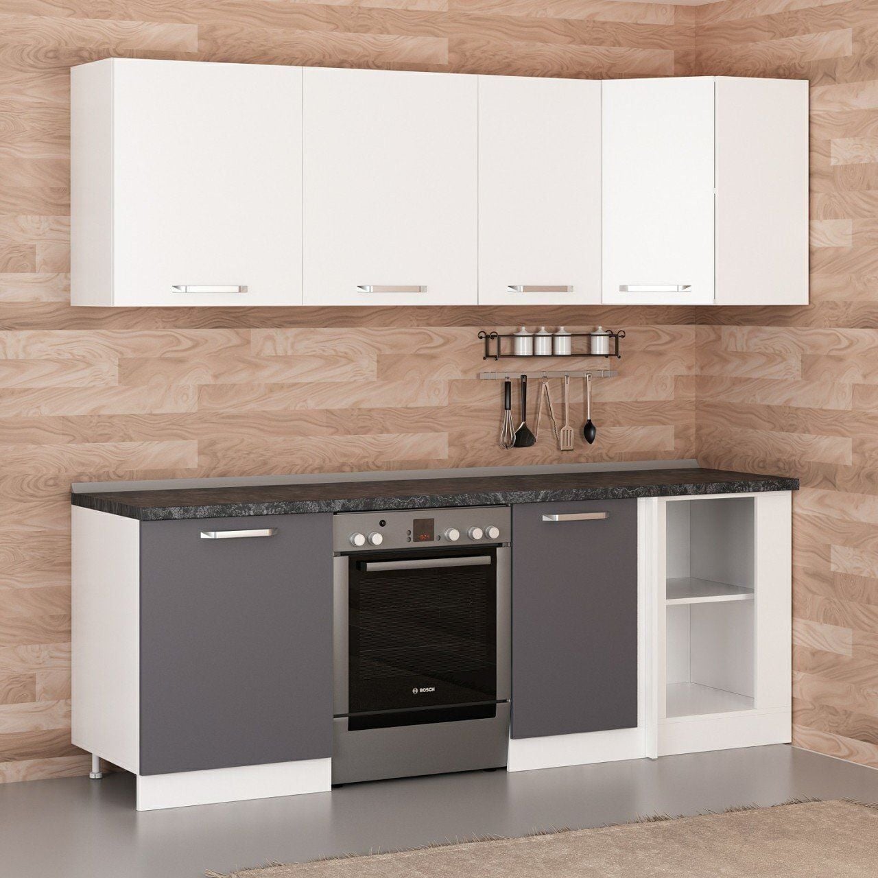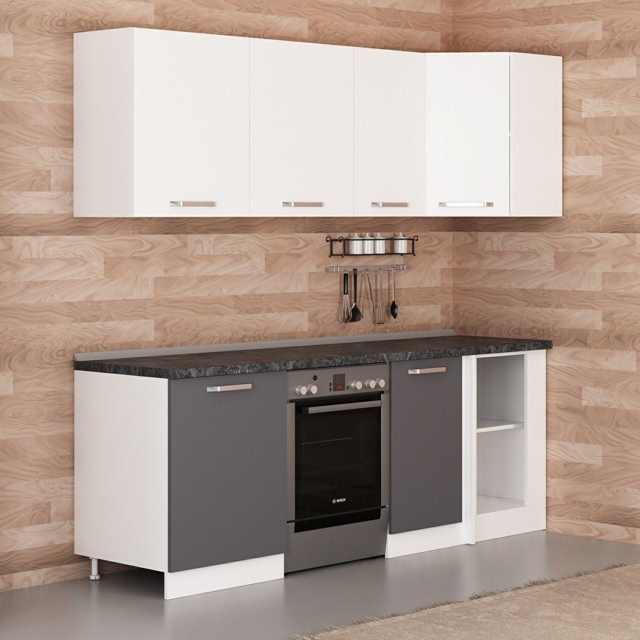 Minar 225Cm Köşe Mutfak Dolabı - Beyaz/Antrasit K225-A2