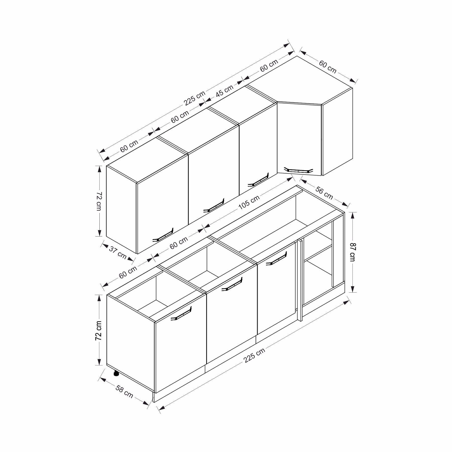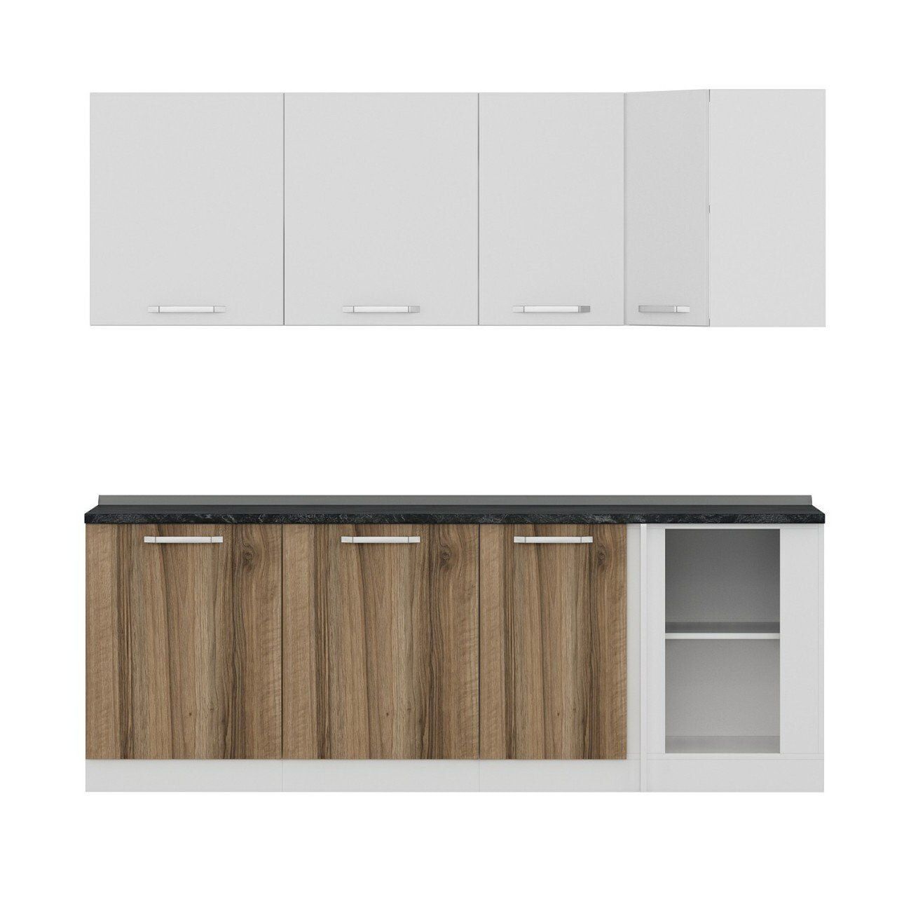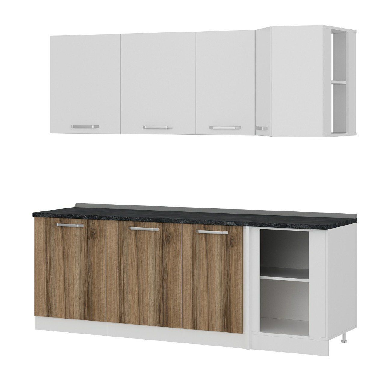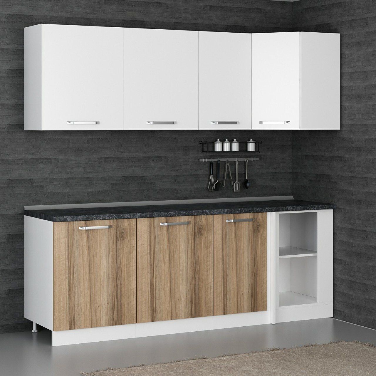 Minar 225Cm Köşe Mutfak Dolabı - Beyaz/Dore K225-D1