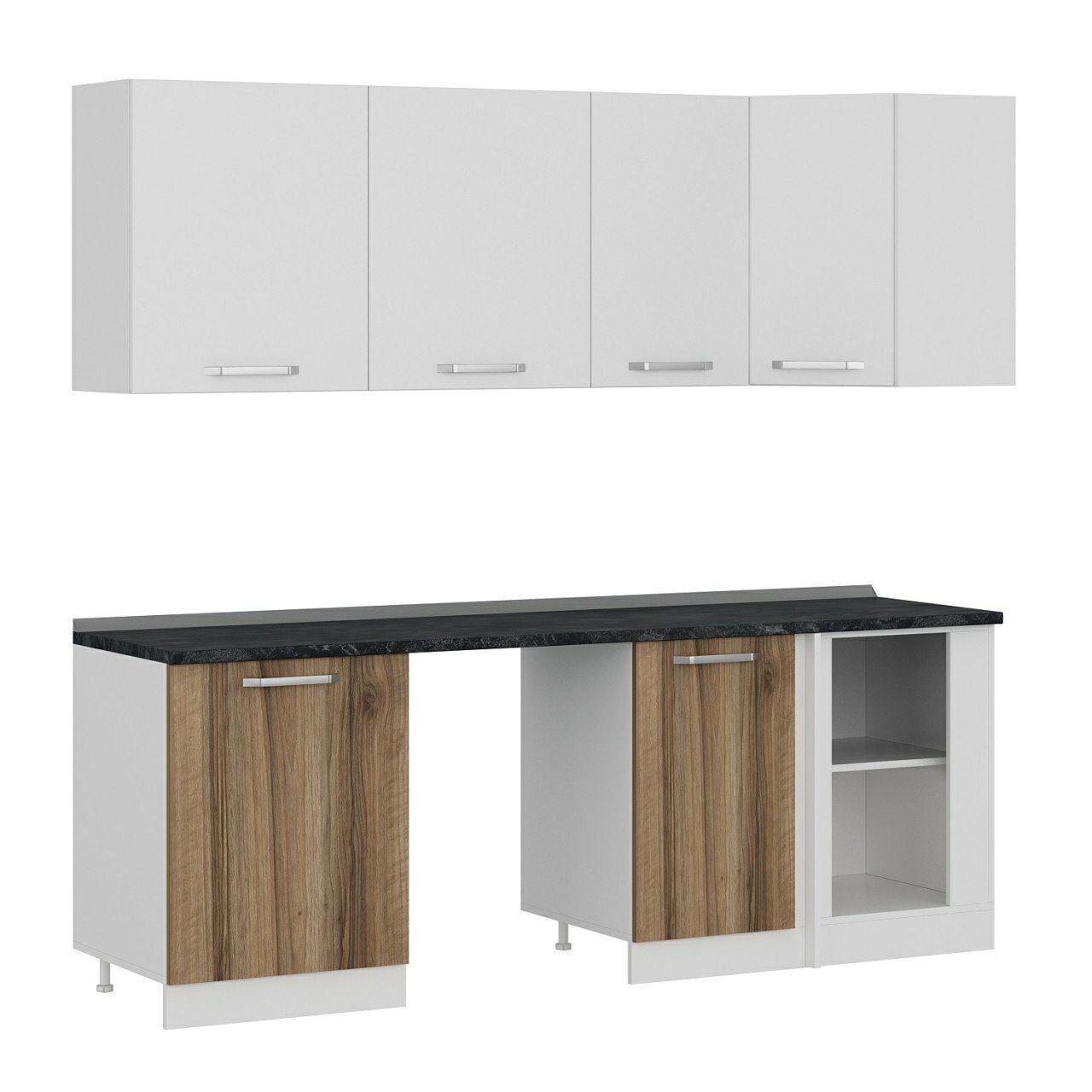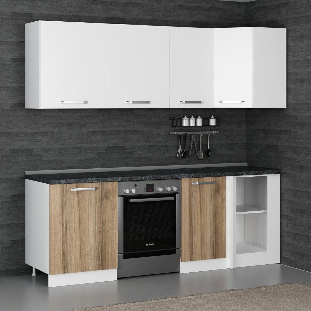 Minar 225Cm Köşe Mutfak Dolabı - Beyaz/Dore K225-D2