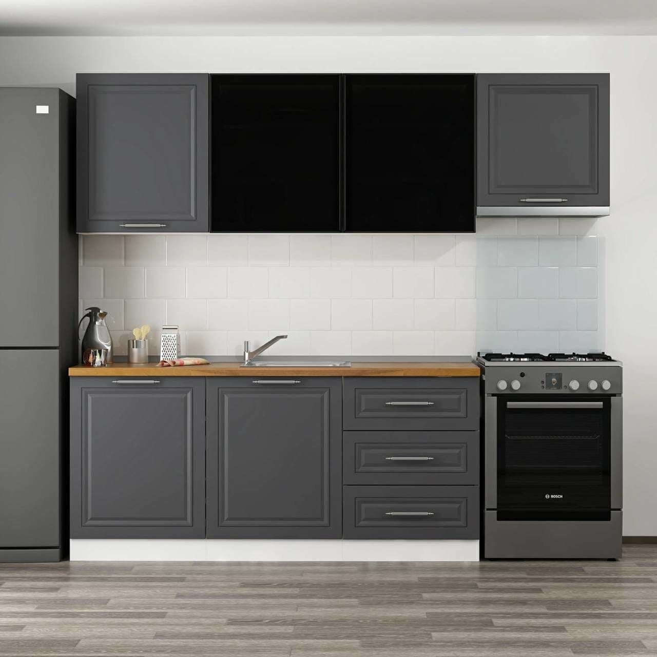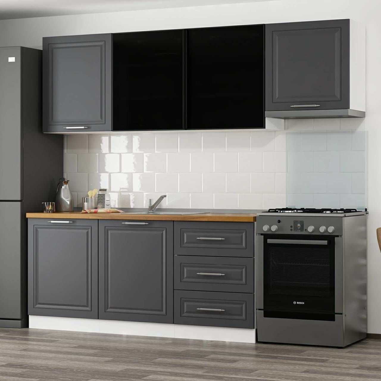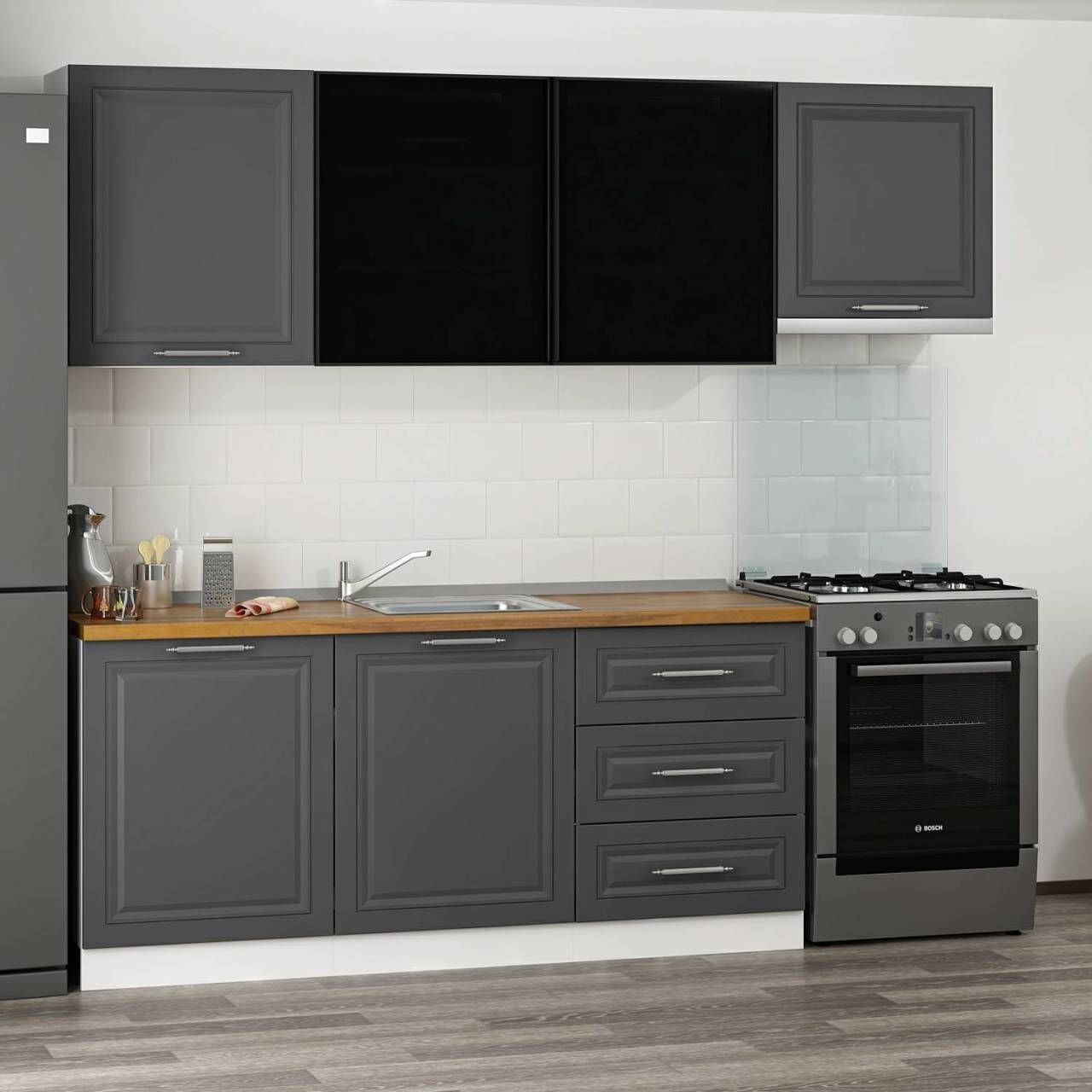 Minar 240 Cm Mbr C+Alm. Cam Mutfak Dolabı Byz Ant 240-Mcacba2
