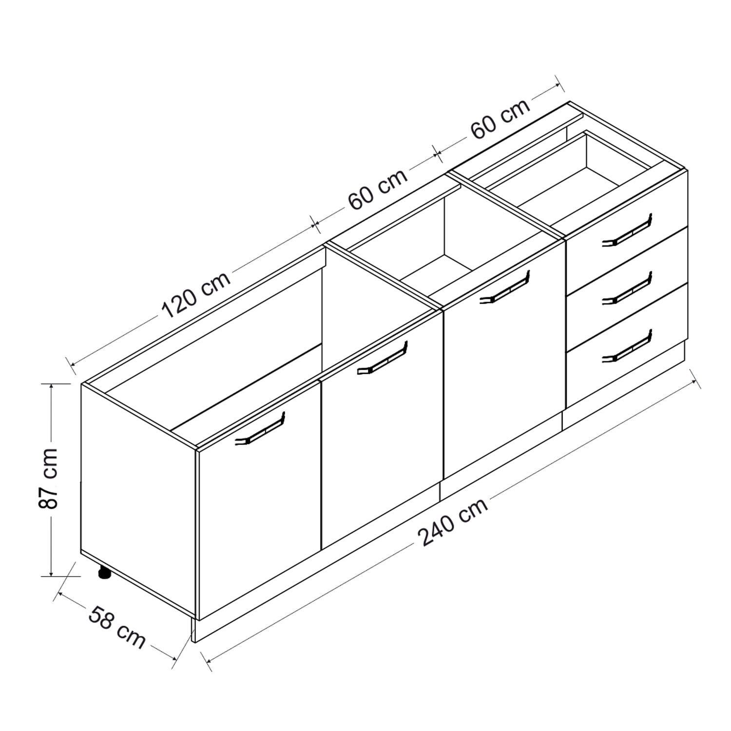 Minar 240 Cm Mutfak Dolabı Beyaz Dore 240-D3-Alt Modül