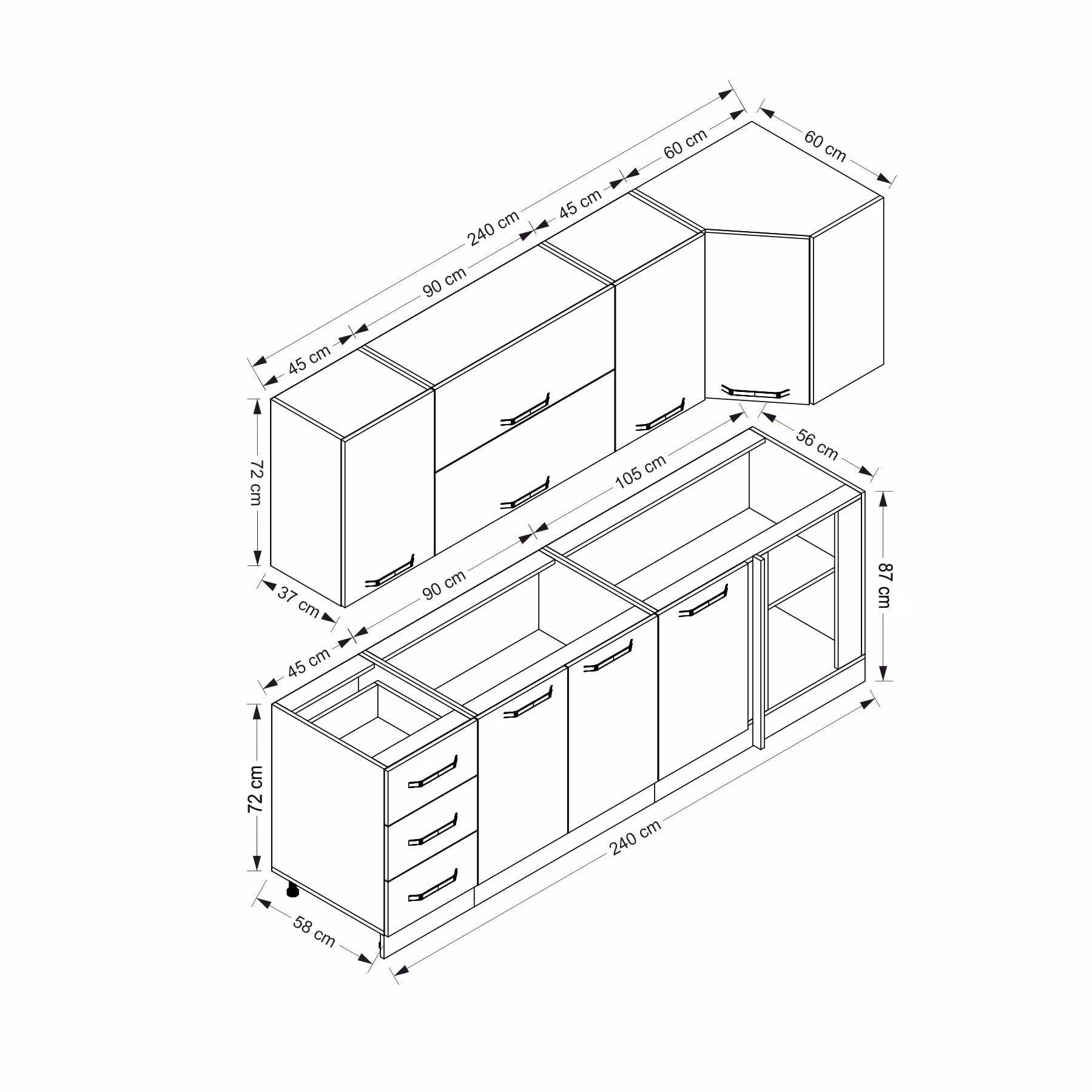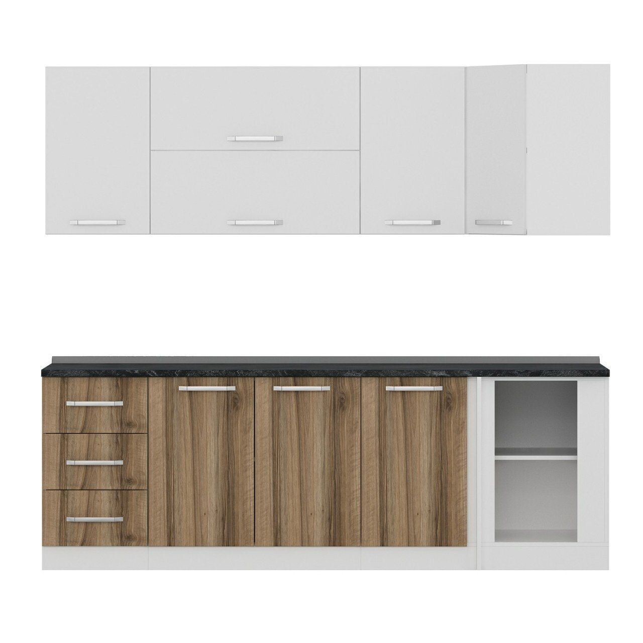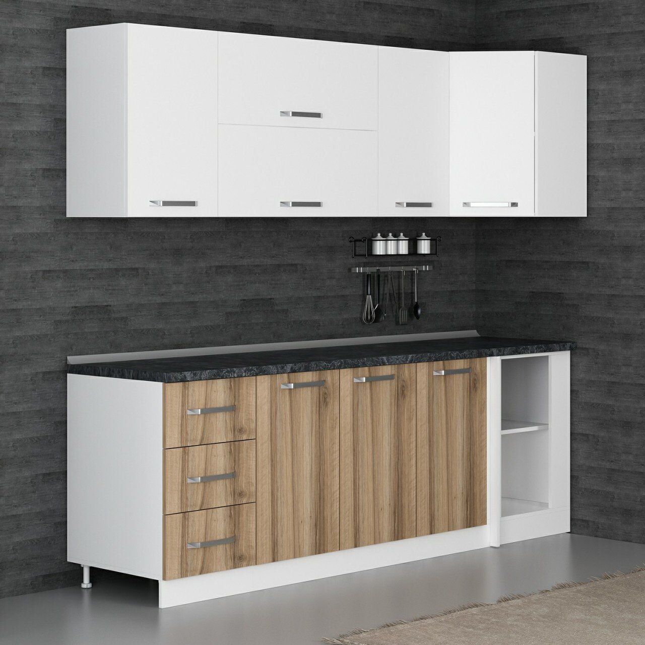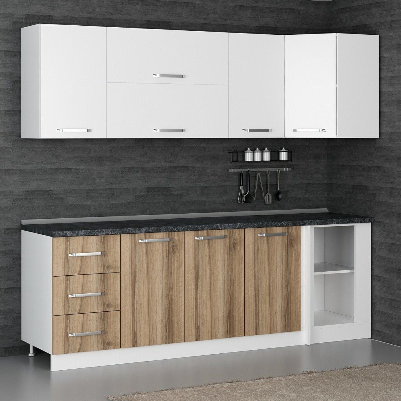 Minar 240Cm Köşe Mutfak Dolabı - Beyaz/Dore K240-D3