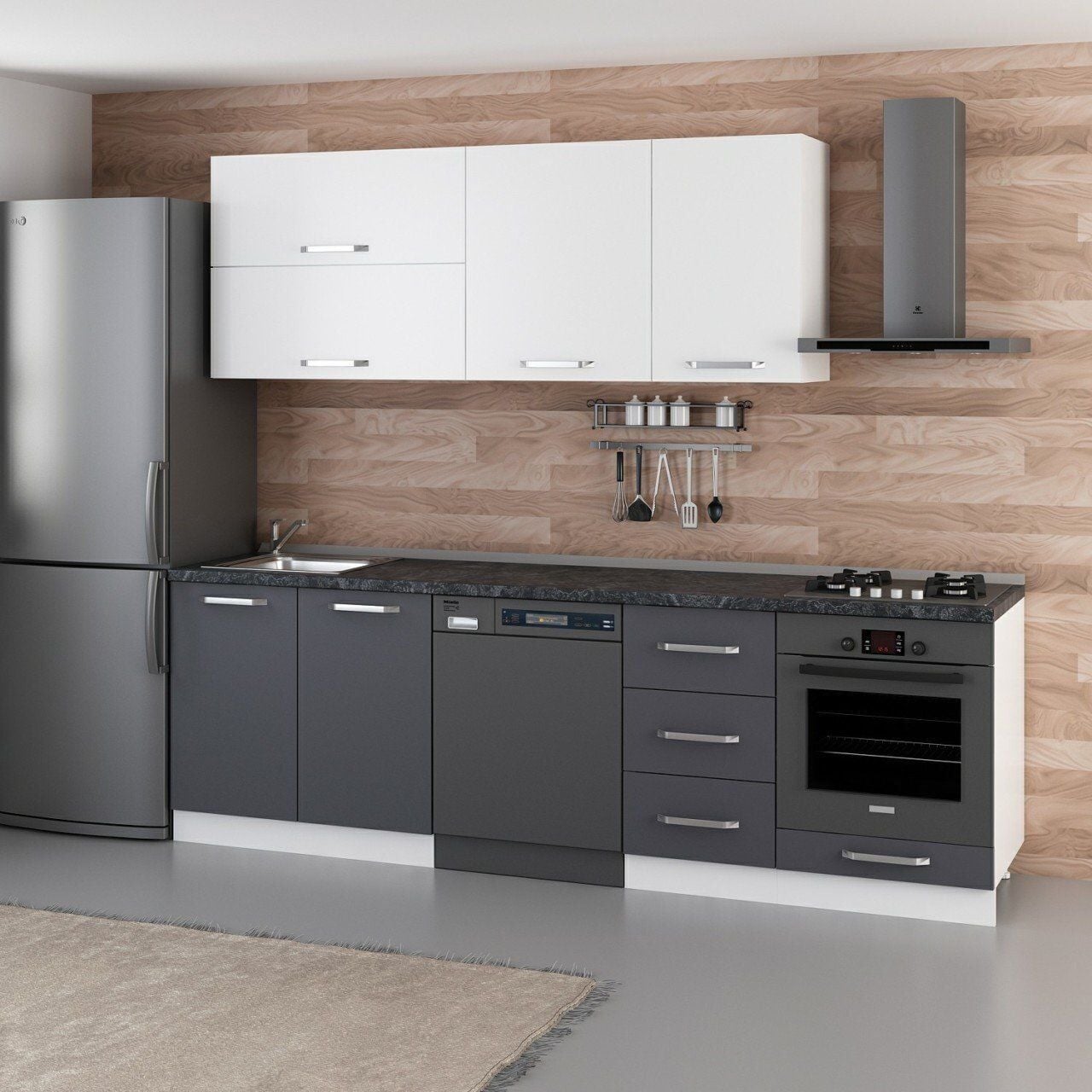 Minar 255 Cm Mutfak Dolabı Beyaz Antrasit 255-A14