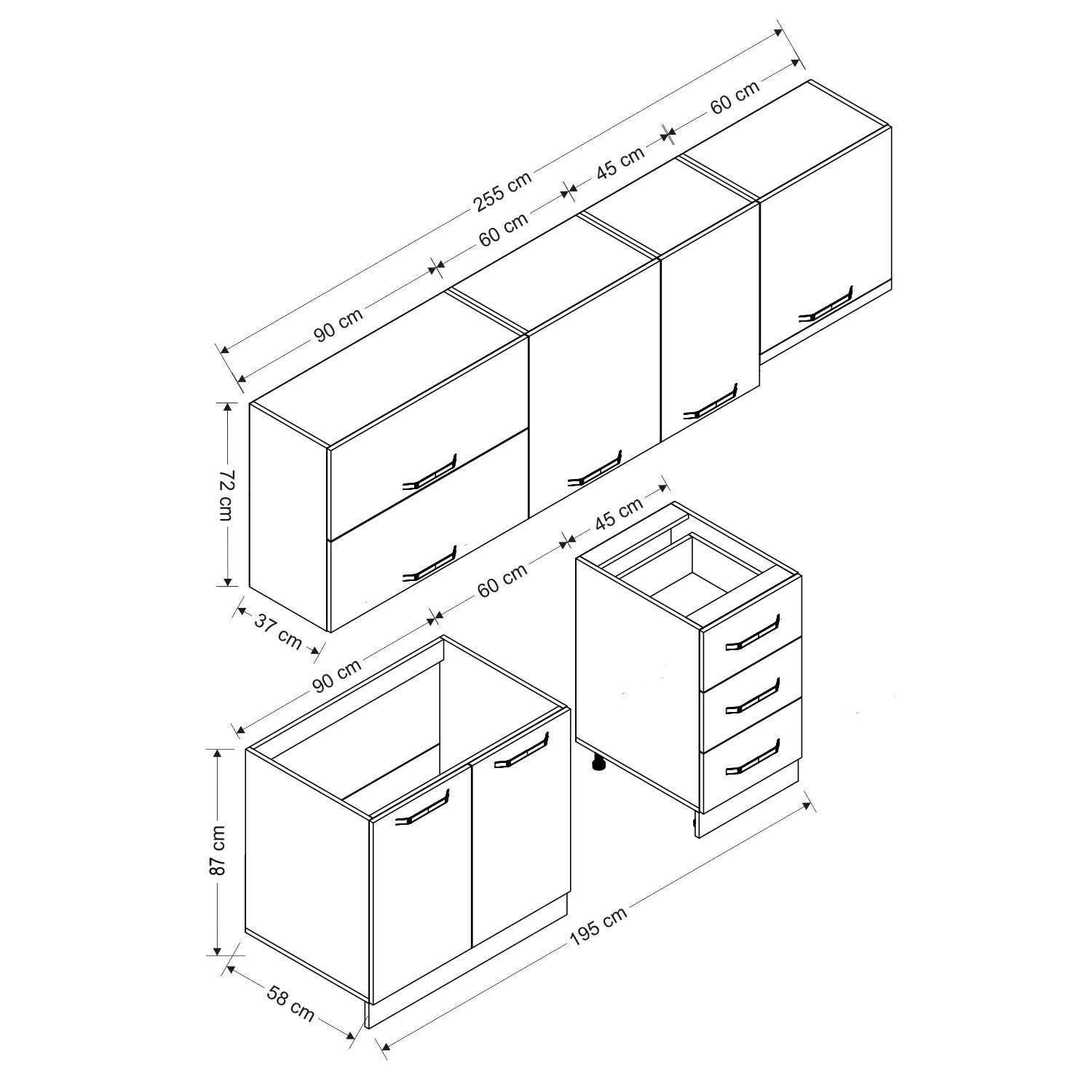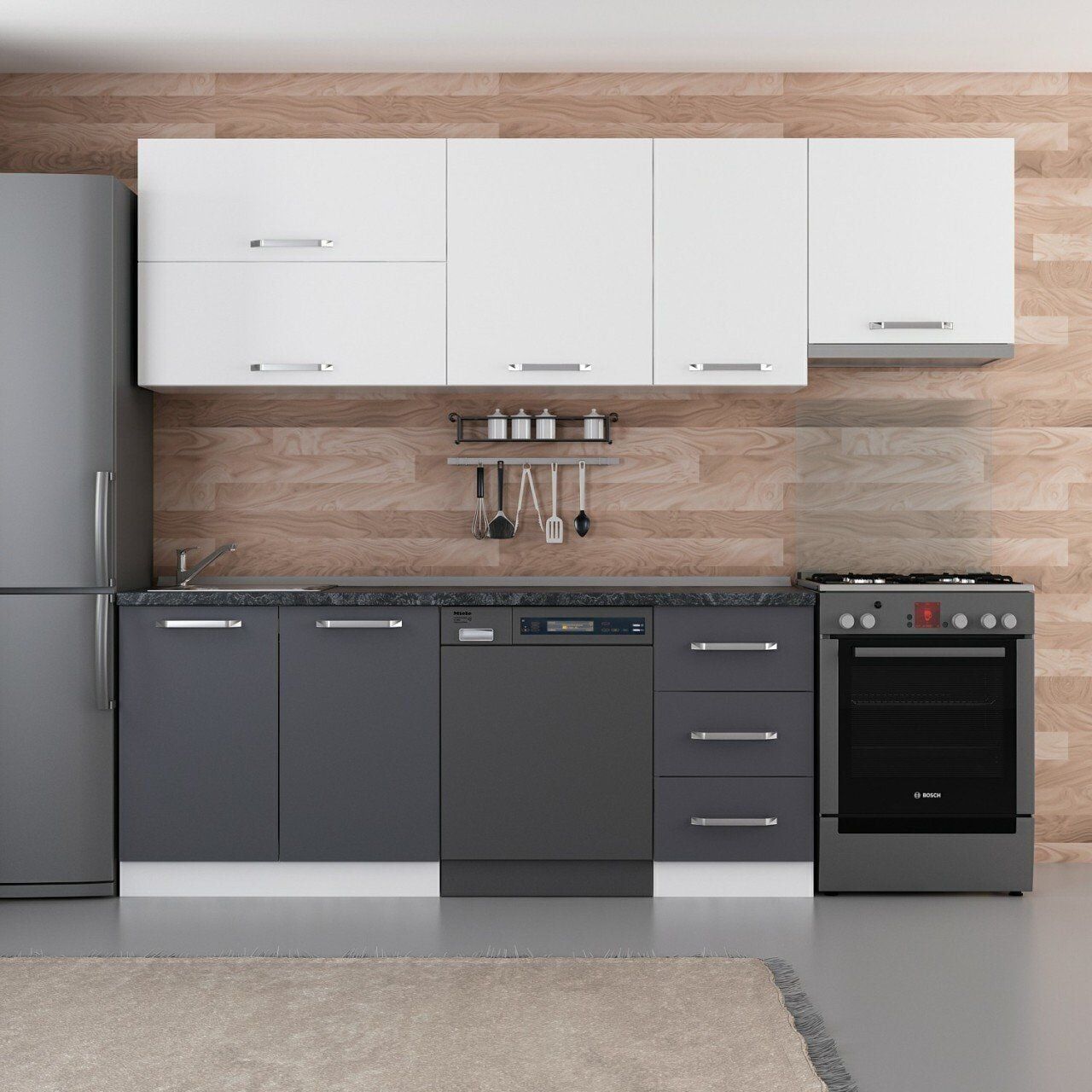 Minar 255 Cm Mutfak Dolabı Beyaz Antrasit 255-A15