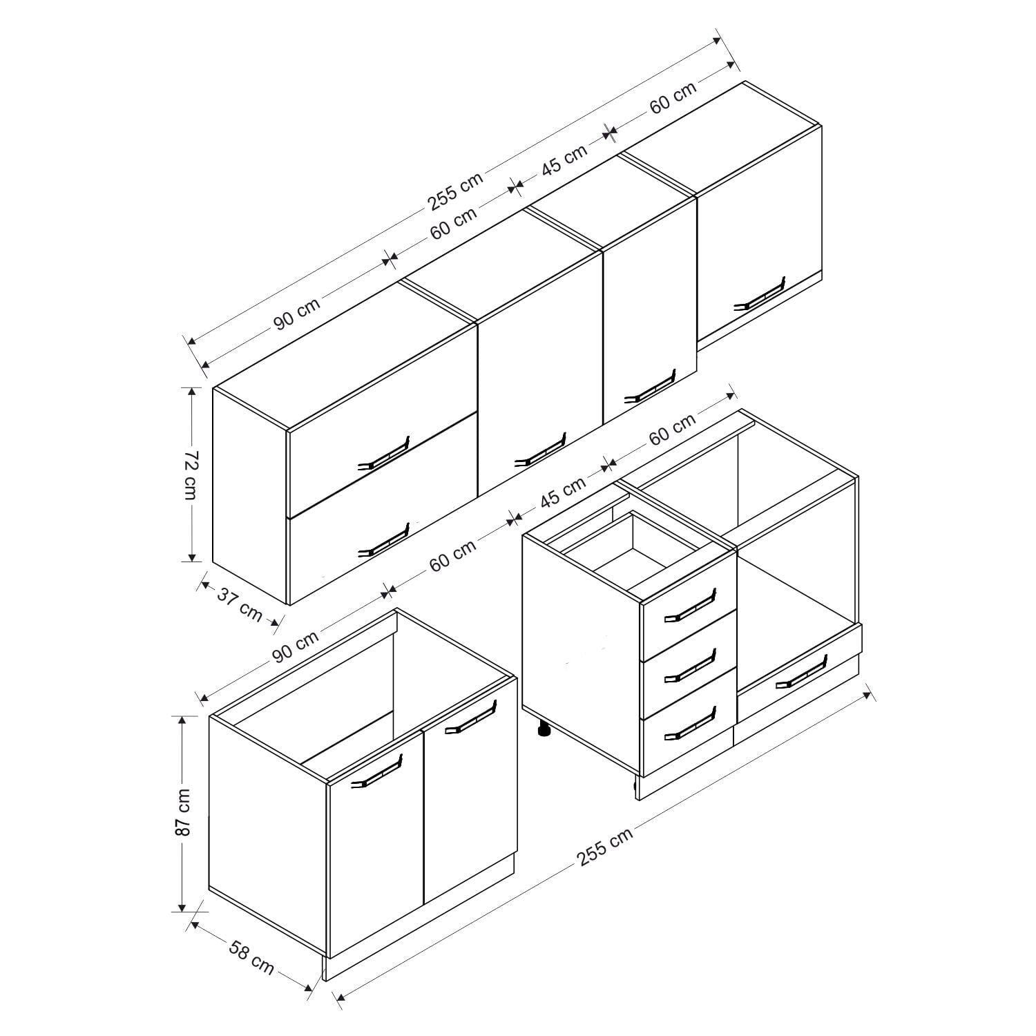 Minar 255 Cm Mutfak Dolabı Beyaz Antrasit 255-A16
