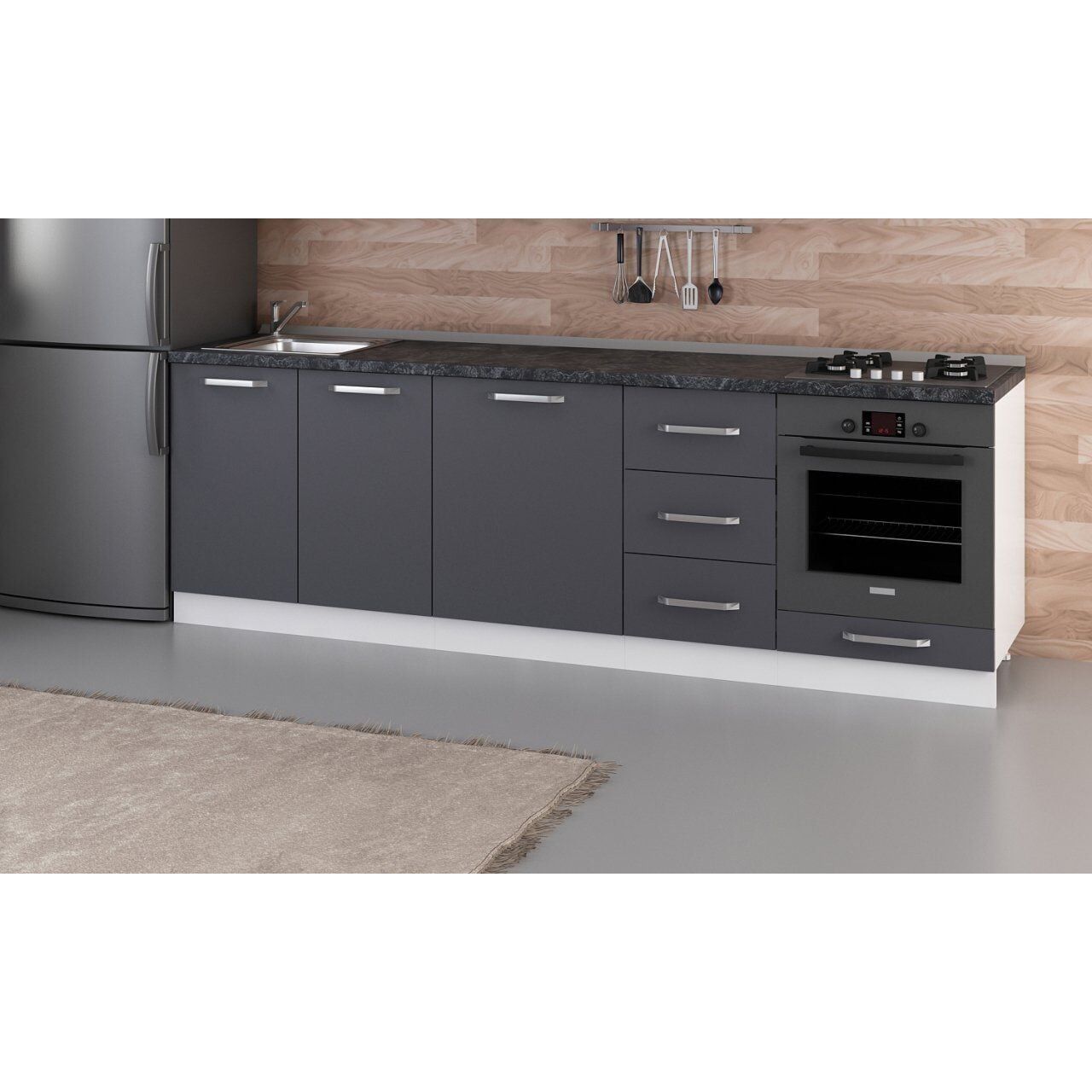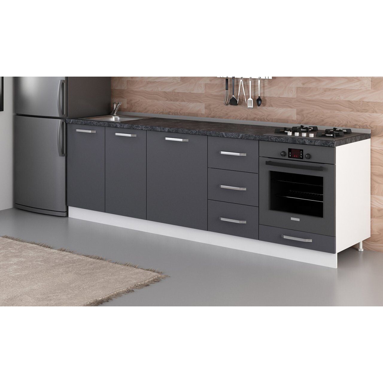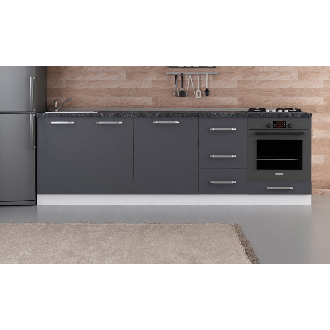 Minar 255 Cm Mutfak Dolabı Beyaz Antrasit 255-A3-Alt Modül