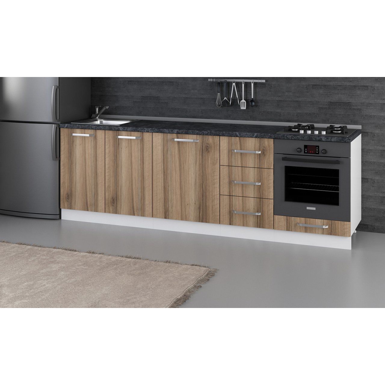 Minar 255 Cm Mutfak Dolabı Beyaz Dore 255-D3-Alt Modül