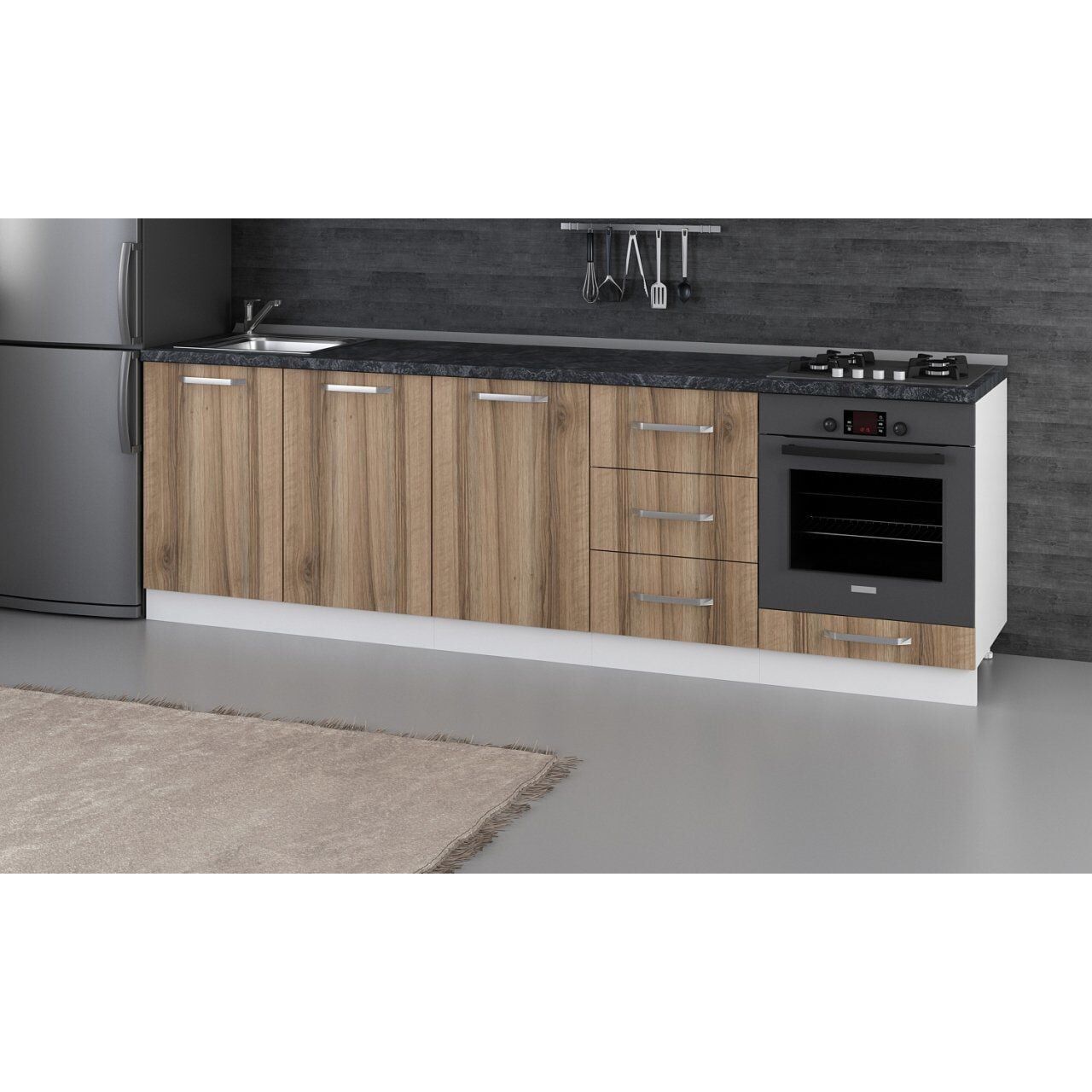 Minar 260 Cm Mutfak Dolabı Beyaz Dore 260-D6-Alt Modül