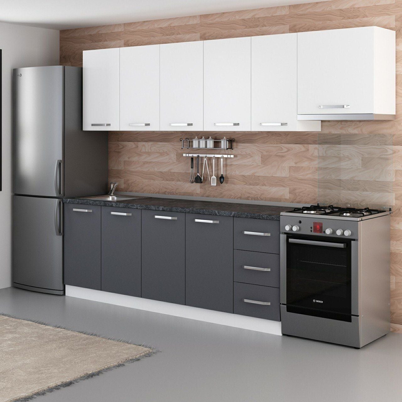 Minar 280 Cm Mutfak Dolabı Beyaz Antrasit 280-A10