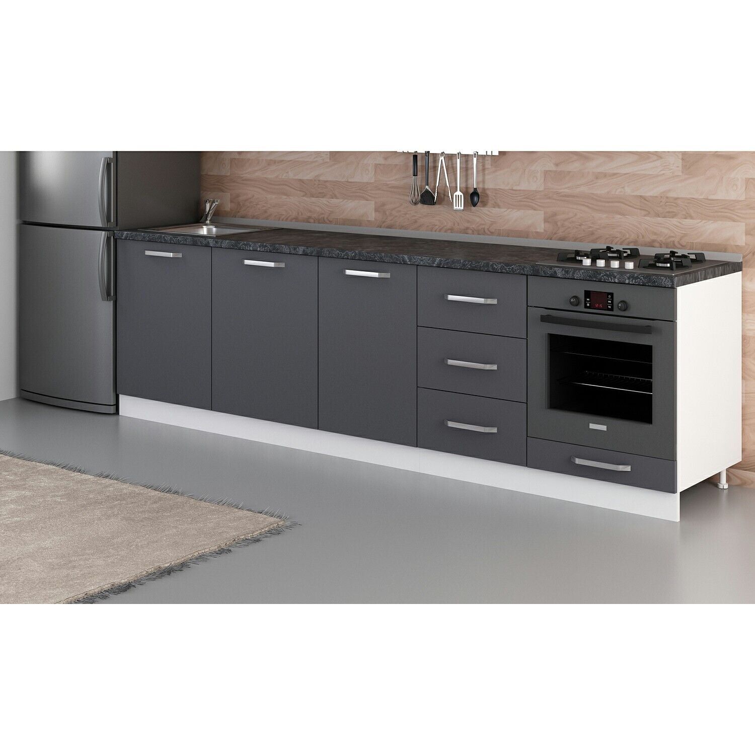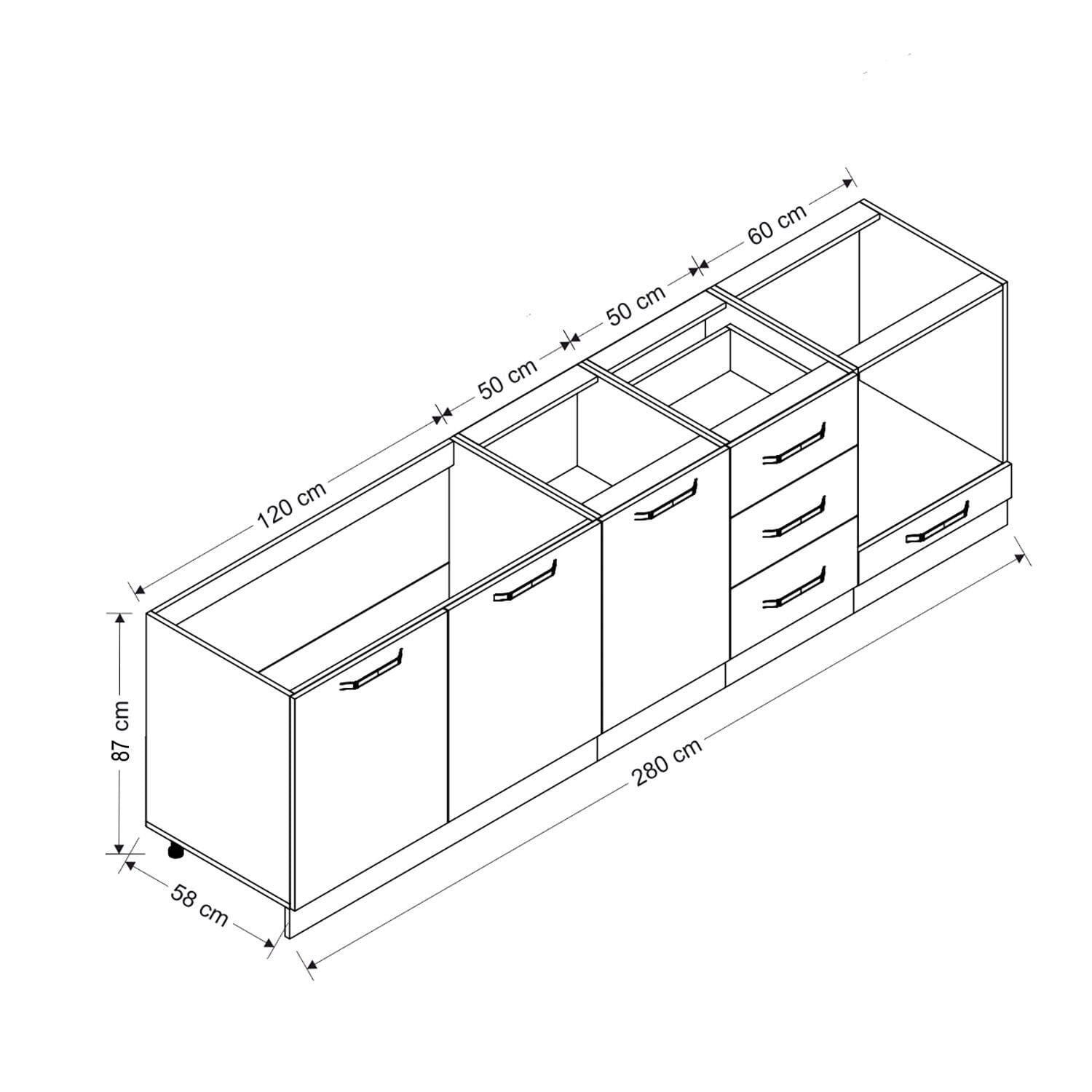 Minar 280 Cm Mutfak Dolabı Beyaz Antrasit 280-A3-Alt Modül