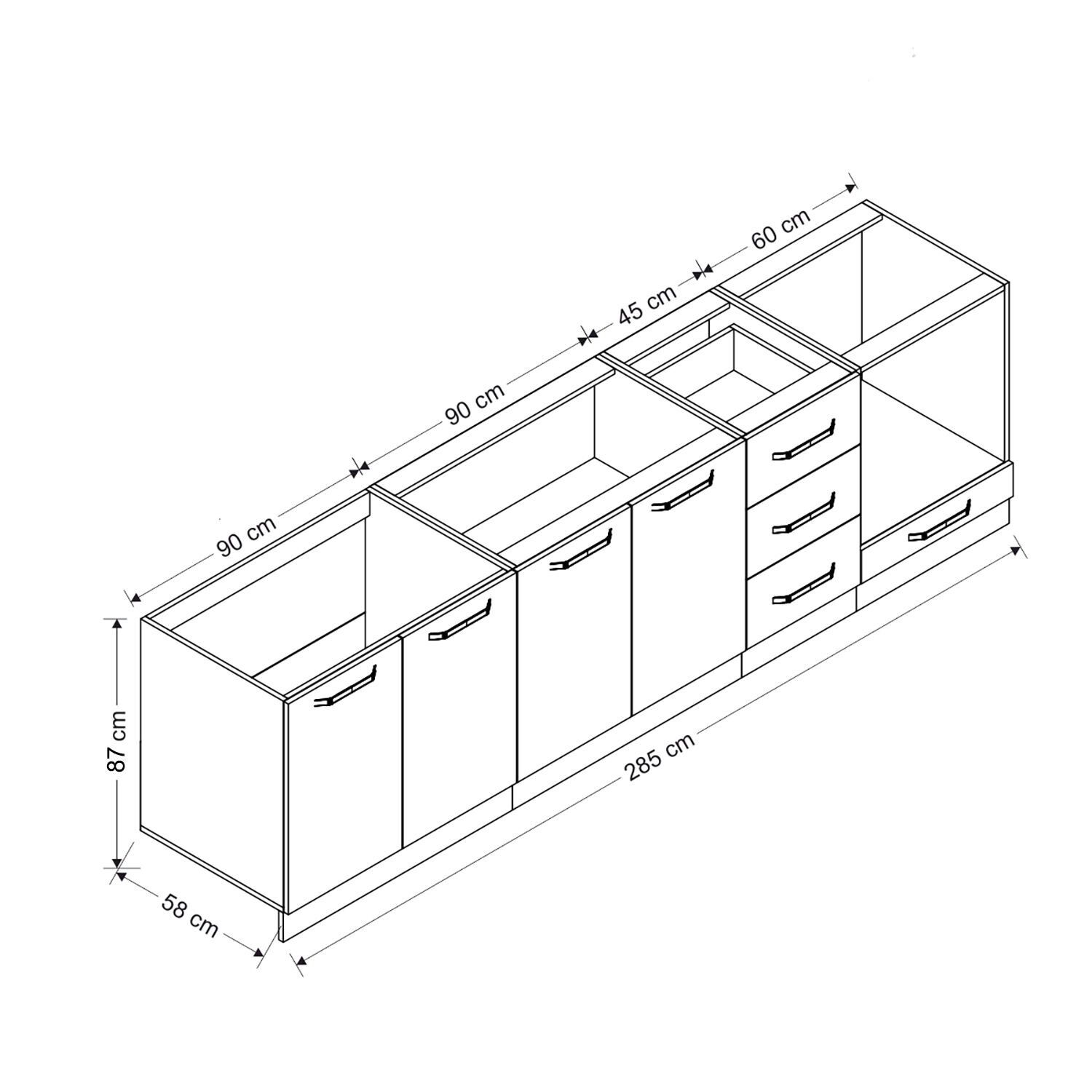 Minar 285 Cm Mutfak Dolabı Beyaz Antrasit 285-A6-Alt Modül