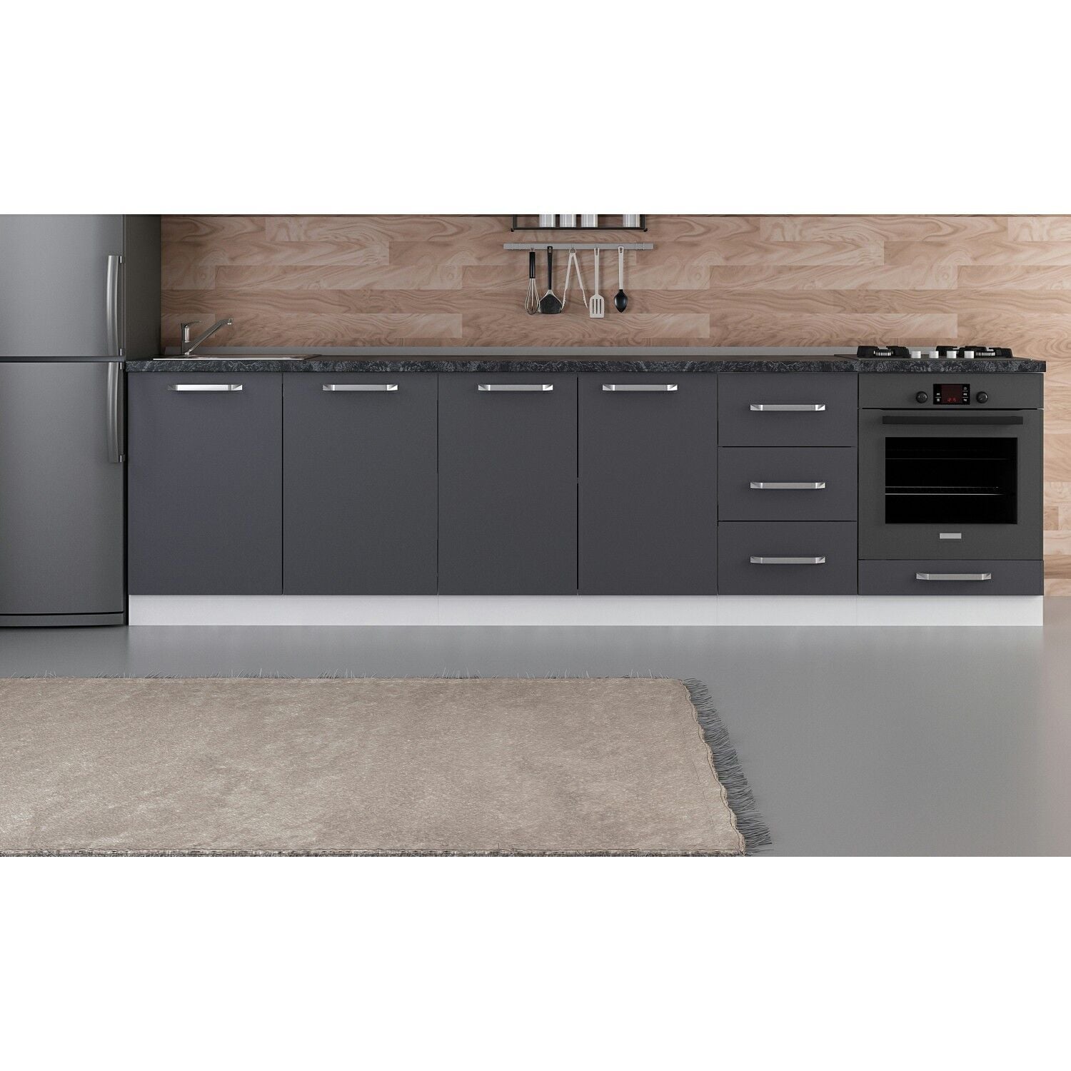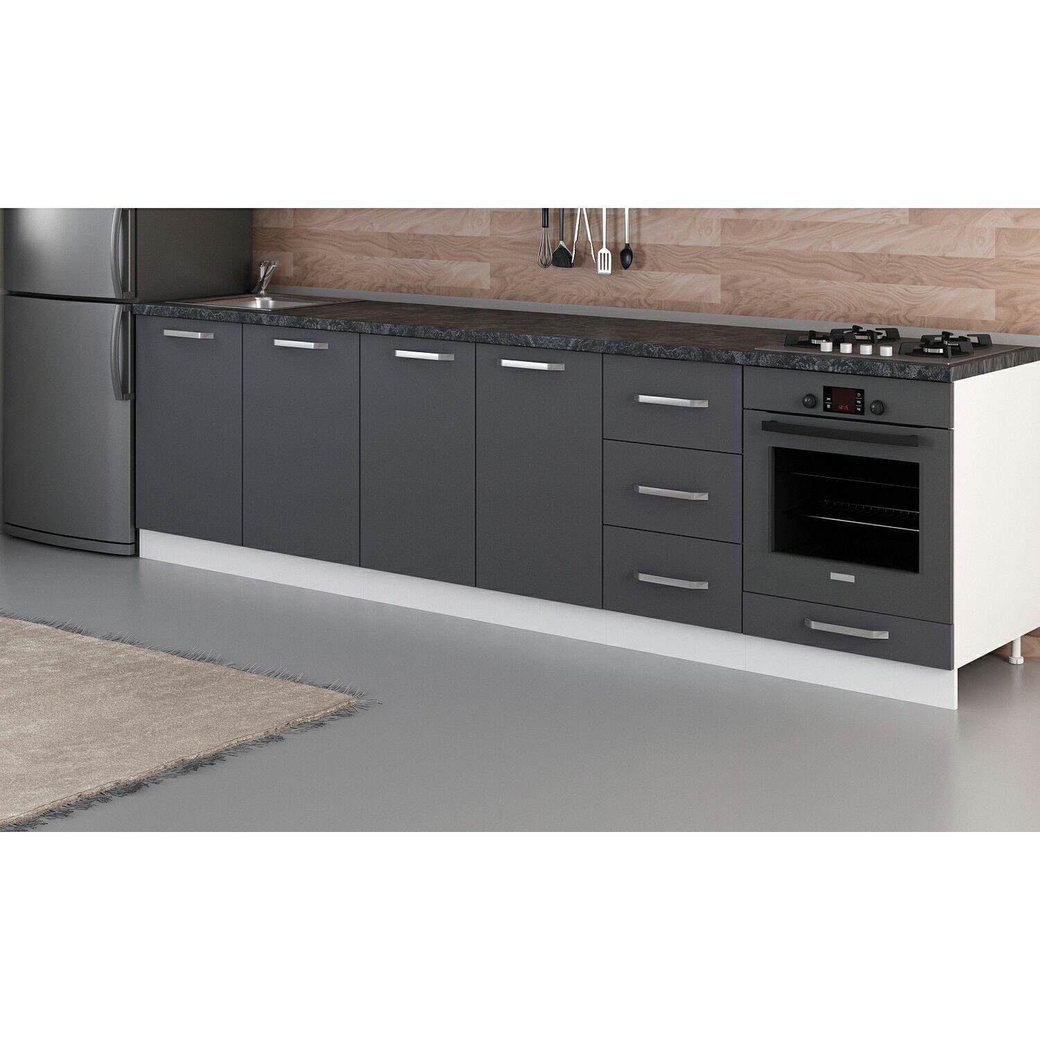 Minar 295 Cm Mutfak Dolabı Beyaz Antrasit 295-A3-Alt Modül
