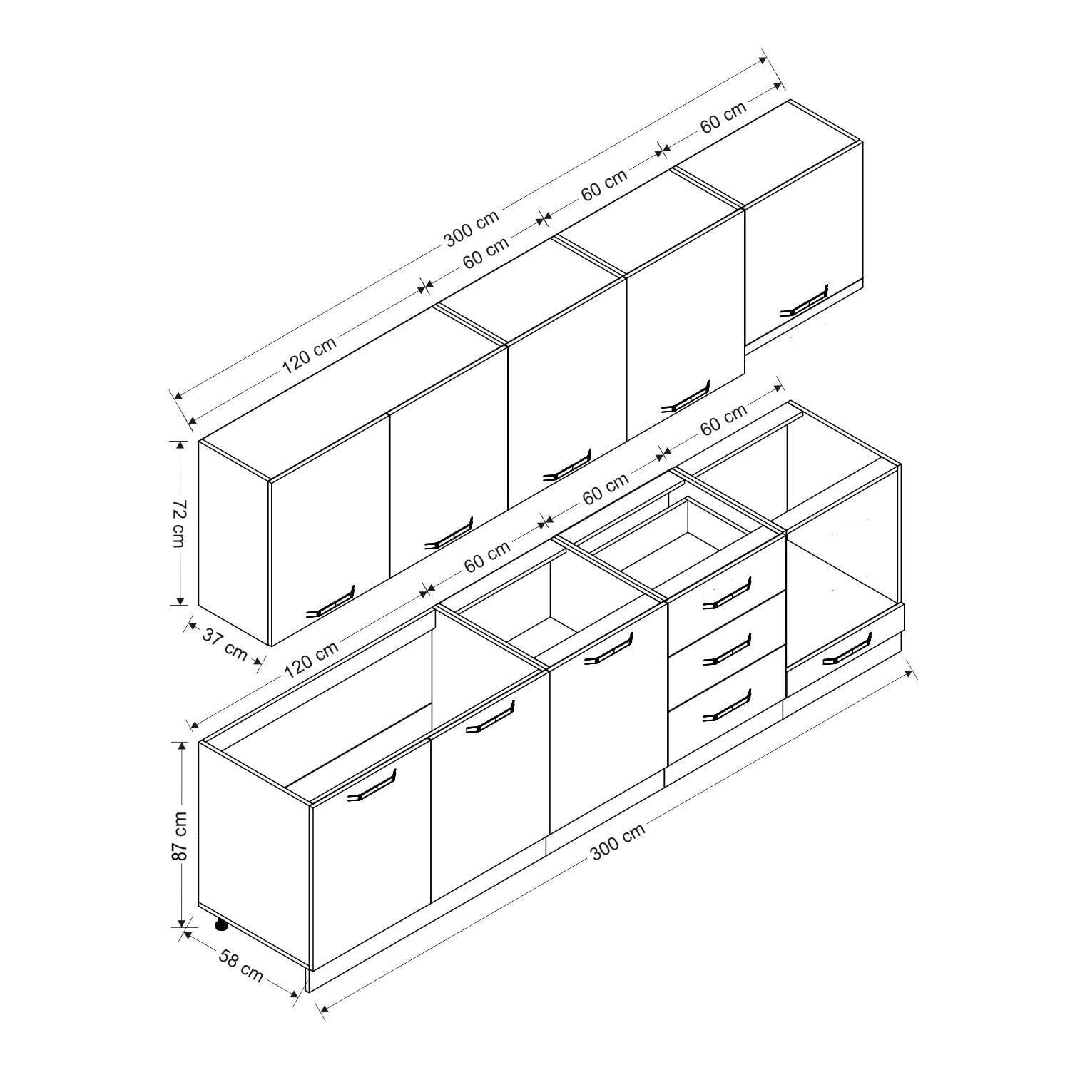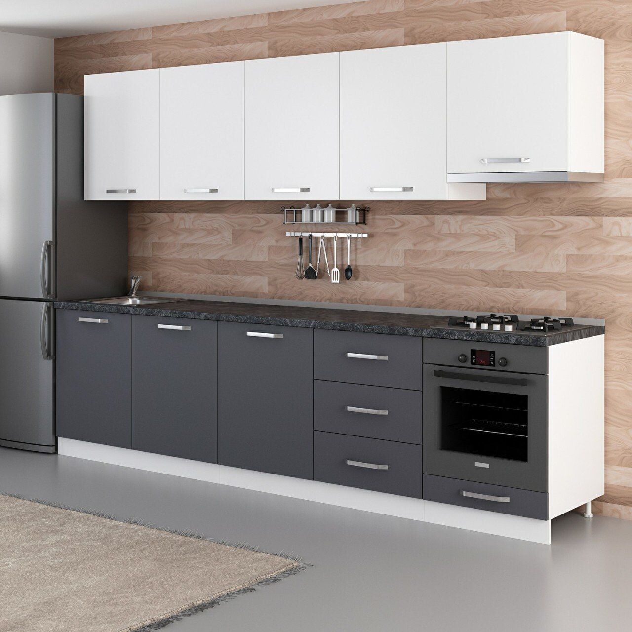 Minar 300 Cm Mutfak Dolabı Beyaz Antrasit 300-A12