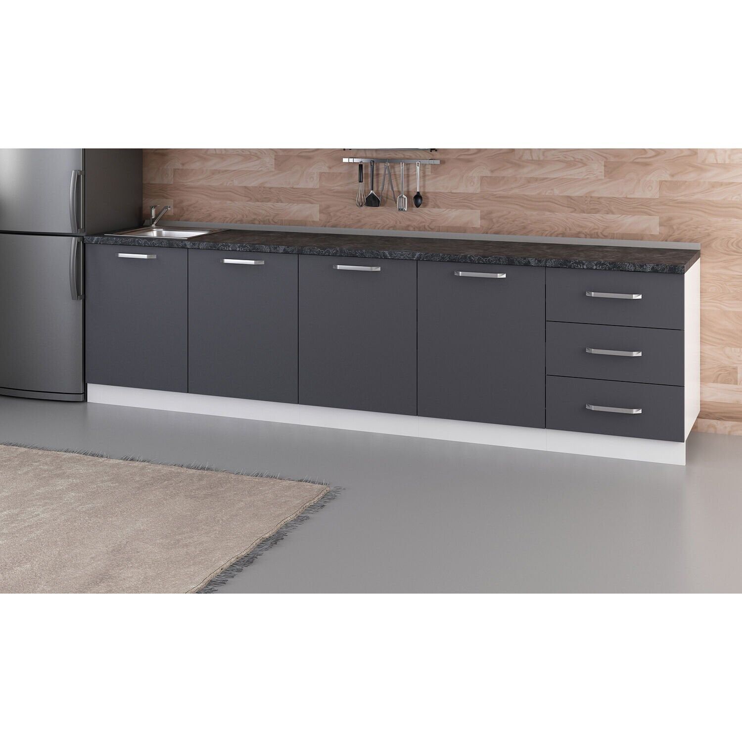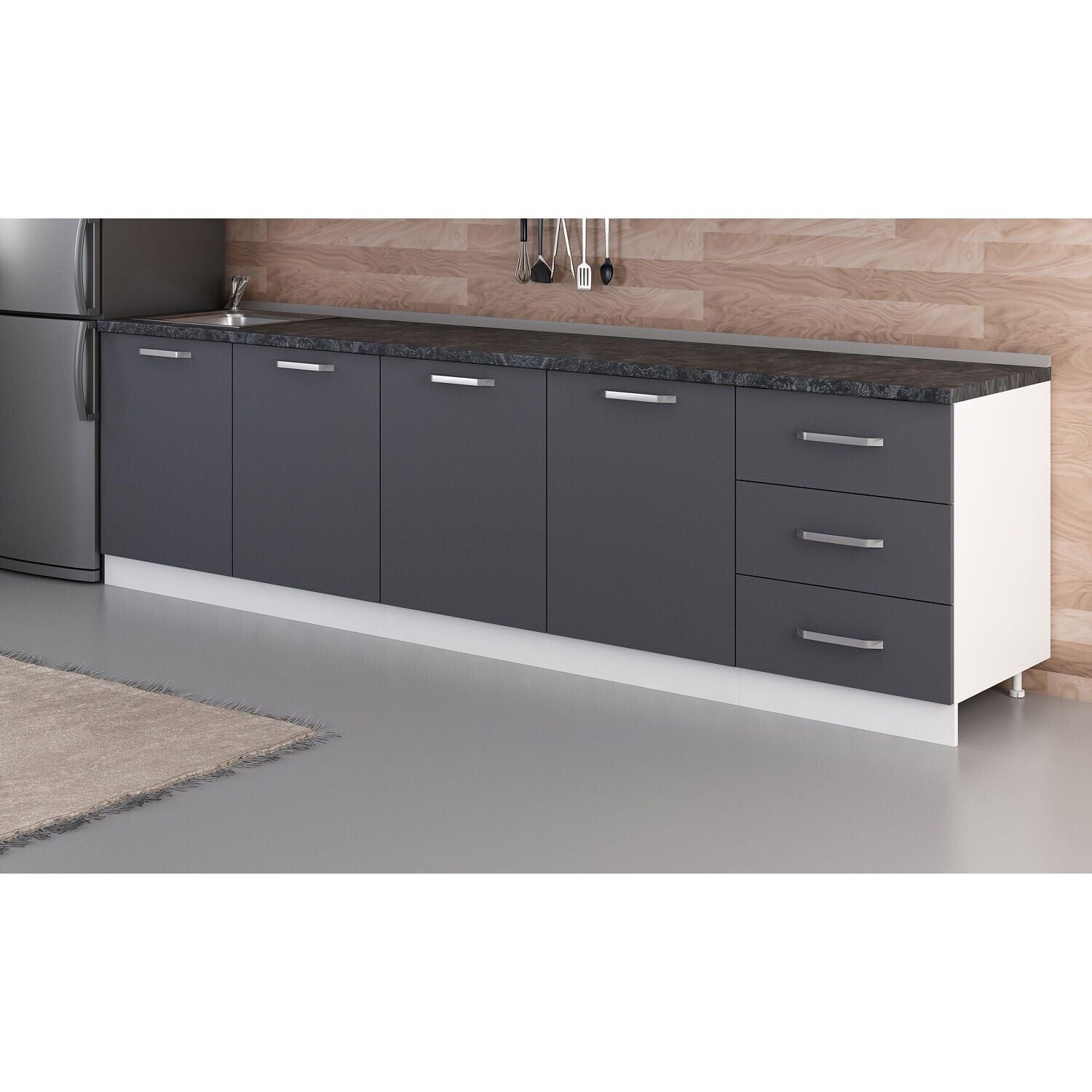Minar 300 Cm Mutfak Dolabı Beyaz Antrasit 300-A3-Alt Modül