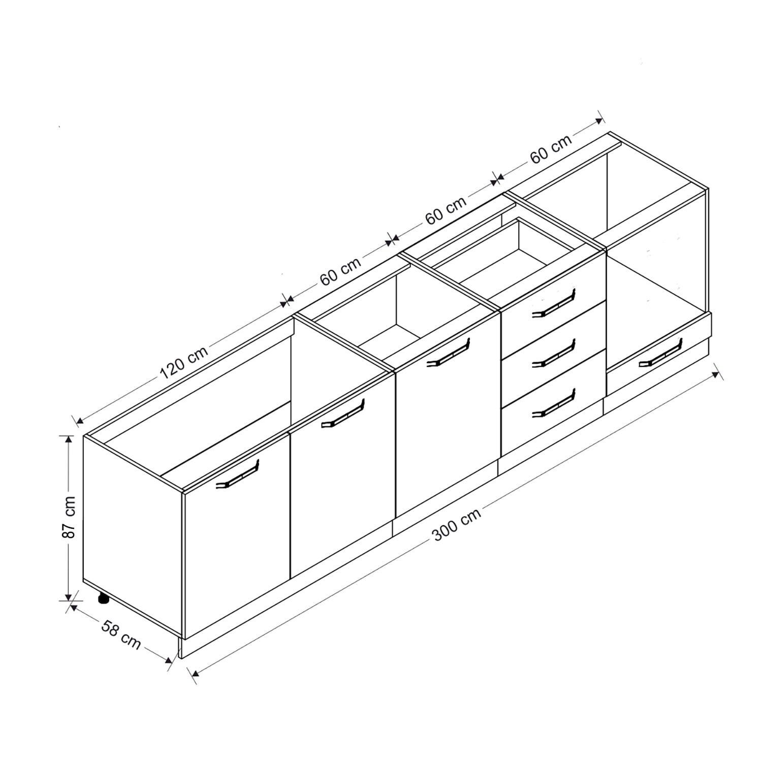 Minar 300 Cm Mutfak Dolabı Beyaz Dore 300-D10-Alt Modül
